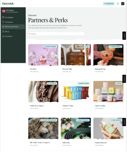 Partytrick’s marketplace connects hosts with brands that enhance their gatherings. I helped expand this ecosystem by identifying aligned brands, onboarding them as marketplace partners, and developing cross-promotional marketing opportunities. Through this work, I supported the onboarding of 10+ consumer brands and helped create new collaborative marketing opportunities between Partytrick and its partners.